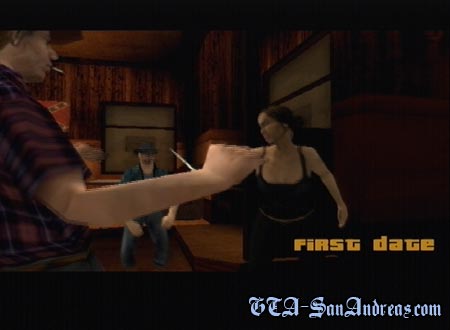 Catalina shows up and wants you to beg for her to come back. Carl really doesn't give a damn, so Catalina gets angry and shows off her new boyfriend, Claude from GTA3. She then wants to race. You're already in a reasonably fast car, and you're doing the same track as before but in reverse, so it shouldn't be too hard. Remember to brake before you go over hills, and try to stay on the dirt roads, and you shouldn't have too much trouble finishing ahead of everyone else. The most important thing is just don't crash. You can take a large shortcut after about twenty seconds where you can cut across a dirt track instead of following the road all of the way down and back, that will put you into first place, then you can just slowly follow the track making sure you get every corner right. After the race you'll meet up with Catalina and Claude and they'll give you some paper about a garage in San Fierro. Catalina then says her and Claude are going to Liberty City, where they obviously stay until early 2,000 when GTA3 takes place.